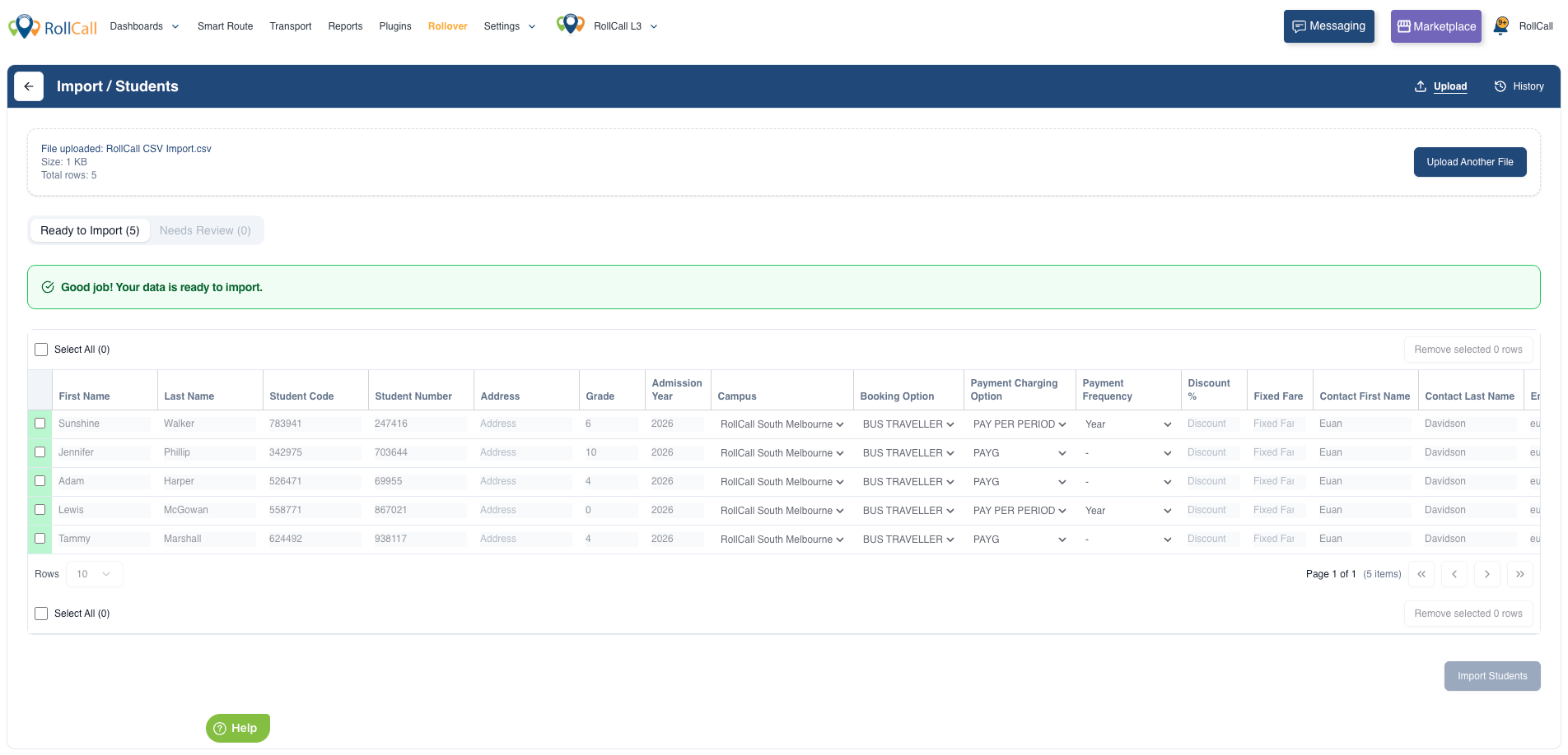 If you are greeted with the Ready to Import screen, then the system recognises the records uploaded as unique. (No duplicate Student Number or Student Code)