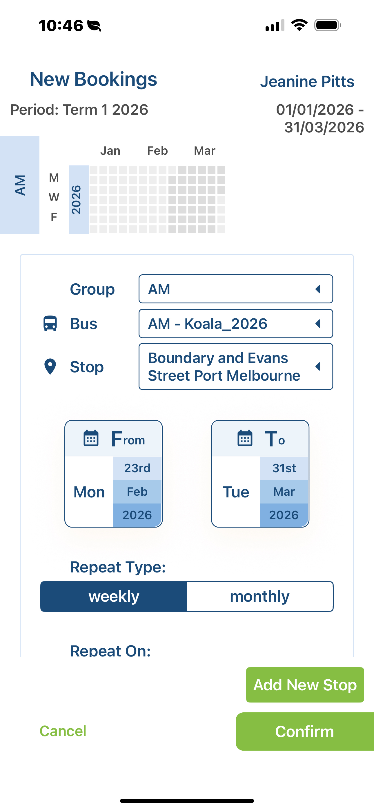 Note: Repeat steps 5-8 to create another Bus Booking, e.g., for PM (afternoon bus)