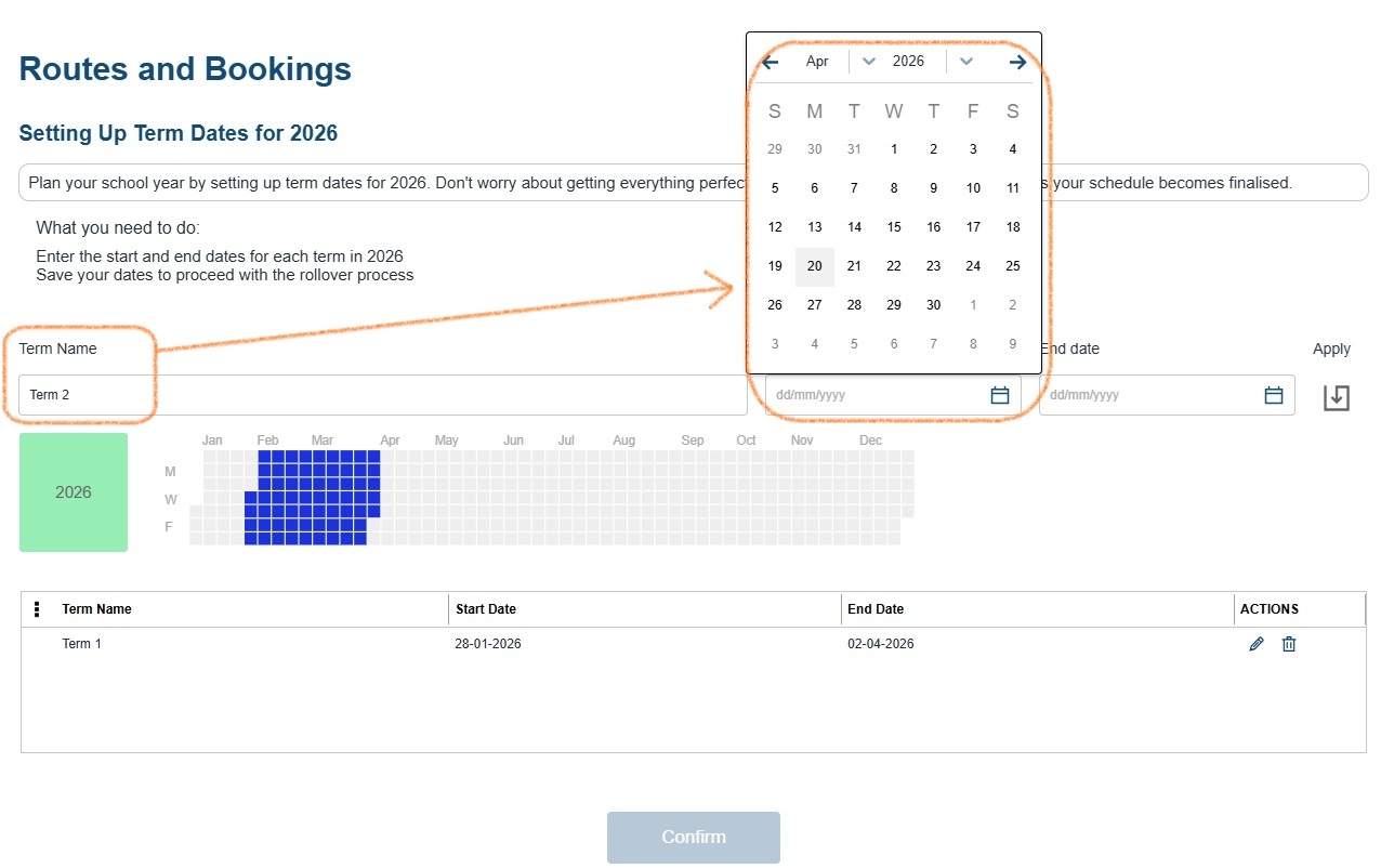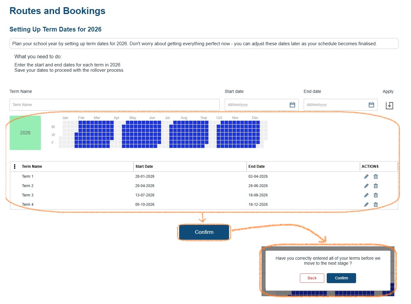 Confirm Dates: Once all term dates are entered, review and confirm.