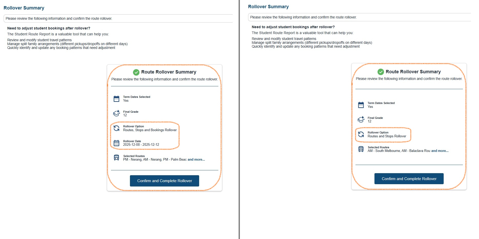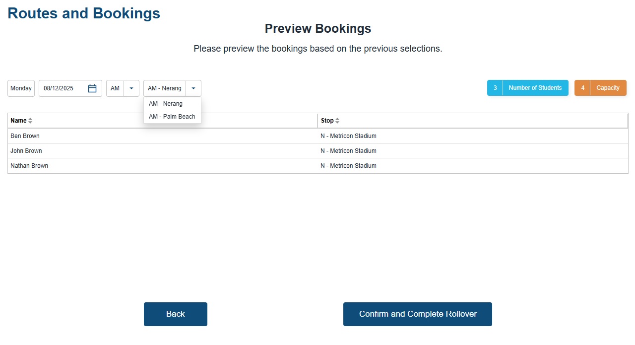 Once you’re happy with the bookings for each route, click Confirm and Complete Rollover.