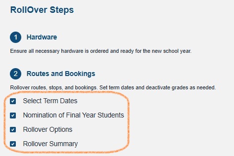 If you choose Routes, Stops and Student Bookings Rollover: