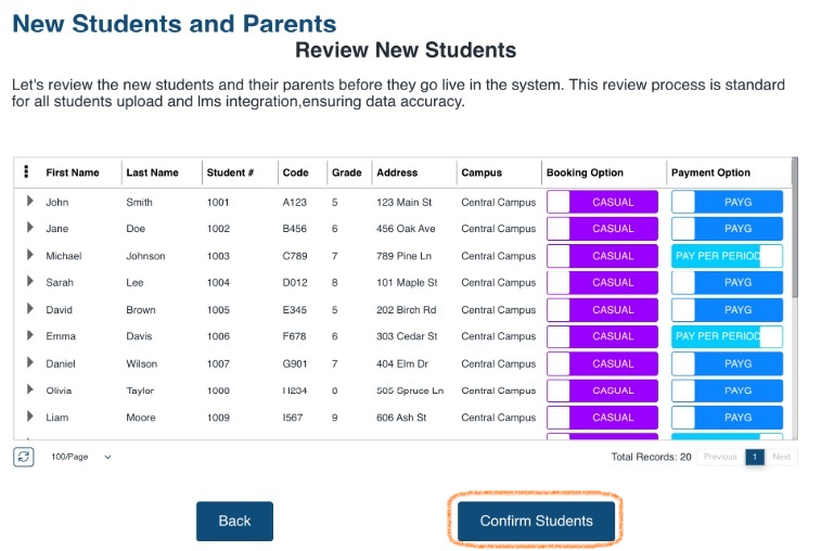 Once complete, review the newly added students and parents to make sure all details were uploaded correctly.