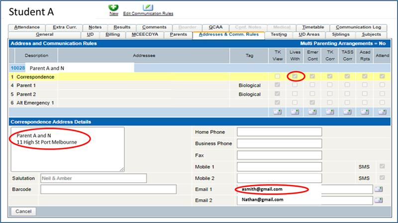 If a Communication Rule is applied to a different address number, or required fields are missing, the parent will not sync.