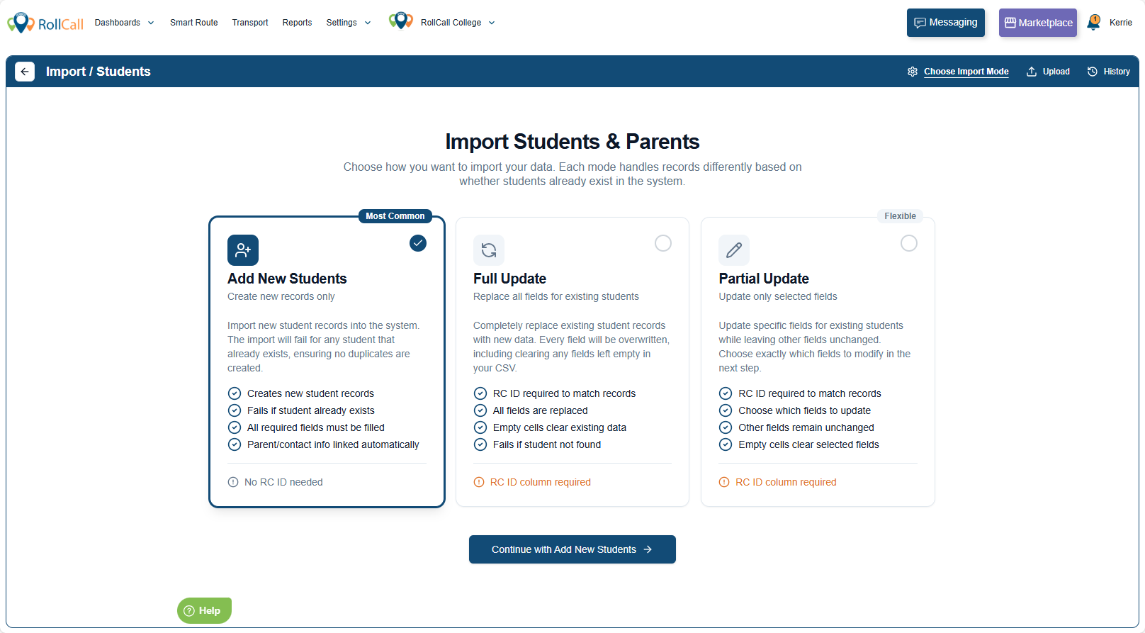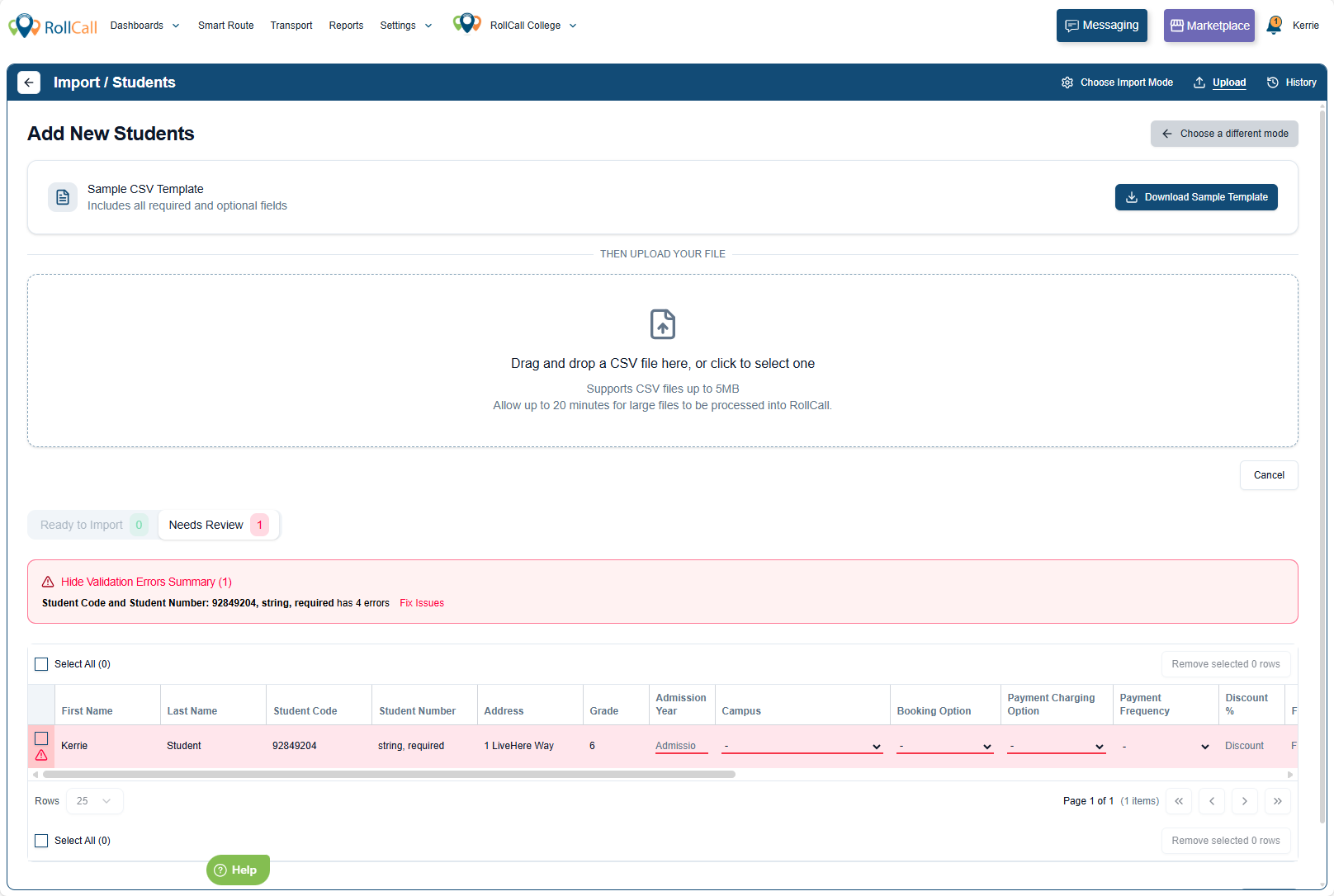 If a row is highlighted or needs a small correction, you can edit it directly in RollCall before importing.