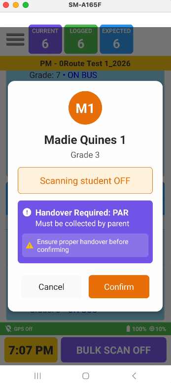 Schools can now apply Student Handover Codes for younger students. These codes appear clearly in the Driver App during drop-off.