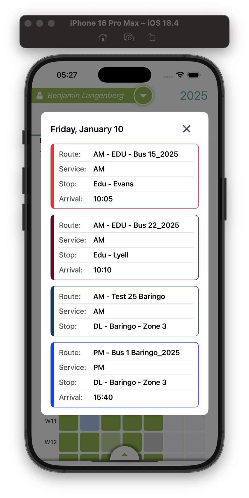 Parents can now view the scheduled arrival time for their child’s bus stop directly in the Parent App calendar.
