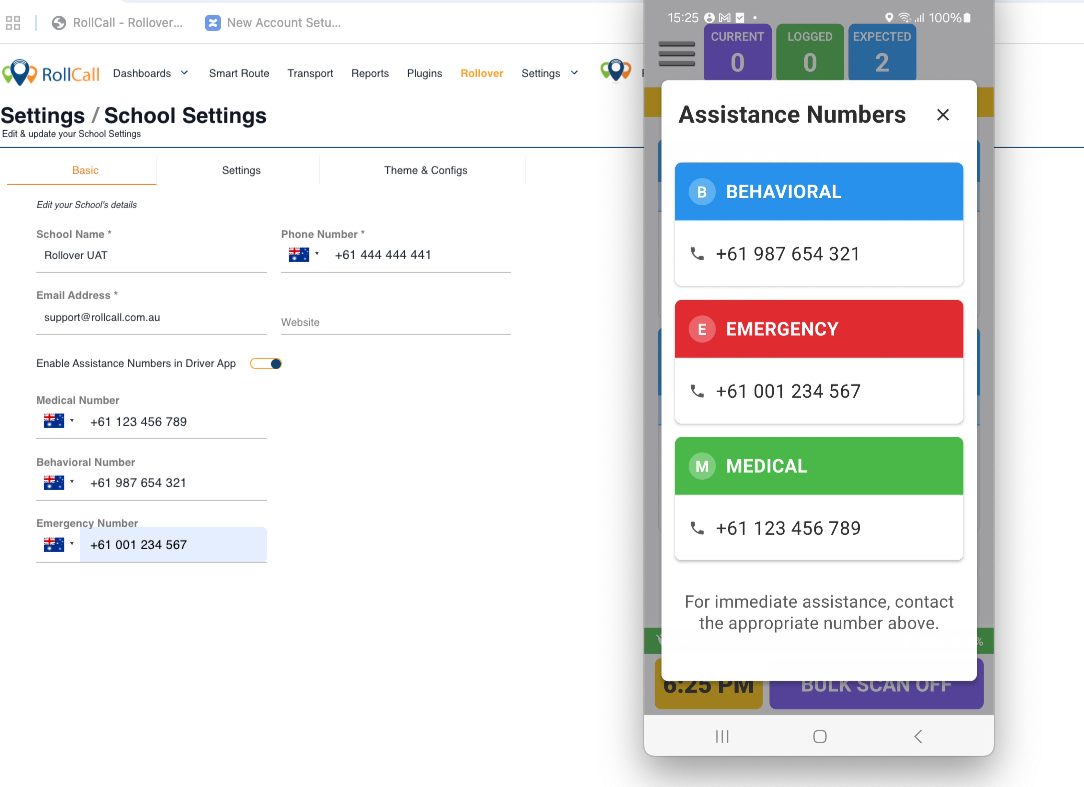 Schools can configure Assistance Numbers for drivers and organise them by category.